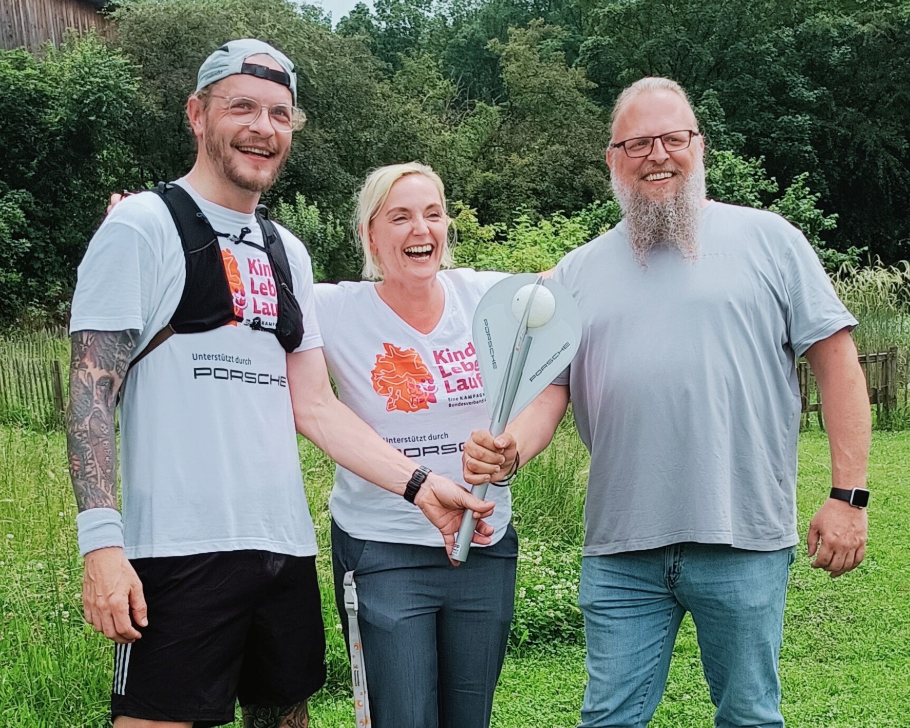 Auch zum diesjährigen Kinder-Lebens-Lauf hatte der Bundesverband Kinderhospiz wieder eine schöne Etappe für uns ausgesucht. Am 21. Juni 2024 nahmen wir das sportliche FriedWald-Team in Empfang. Nachdem die Fackel offiziell in unsere Hände übergeben wurde, erhielten wir sogar einen stattlichen Spendenscheck von der FriedWald GmbH – Wahnsinn!