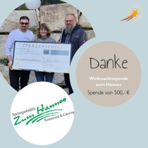 Wir danken für die Spende über 500,- € und wünschen „dem Hannes“ alles Gute.
